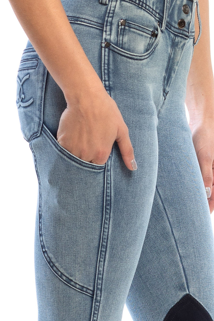 NEW Equestrian Jean - Knee Patch with Cell Phone Pocket - Faded Blue